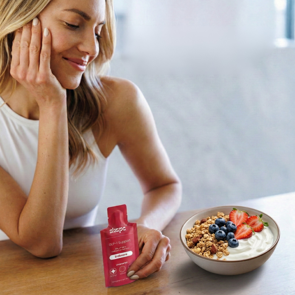 Tag 1 spürst du die Sättigung. Das ist erst der Anfang. Studien zu unseren Inhaltsstoffen zeigen: die echte Veränderung passiert zwischen Woche 4 und 12. Deshalb gibt es Shape im Abo. Jederzeit kündbar.