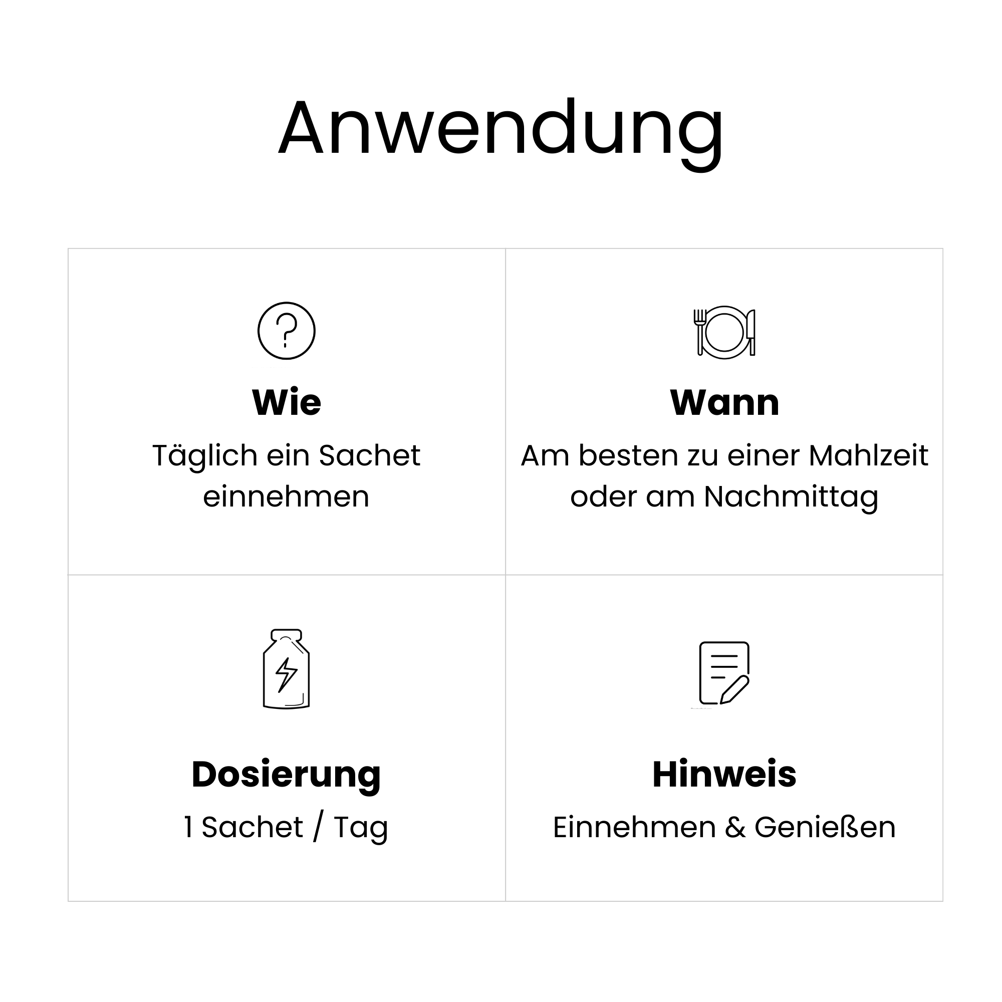 Öffne ein Gel wenn der Hunger kommt - am besten beim klassischen 3-Uhr-Tief. Direkt aus dem Beutel genießen, danach ein großes Glas Wasser trinken. Das Wasser aktiviert die Expansion im Magen und maximiert die Sättigungswirkung. Einmal täglich reicht.